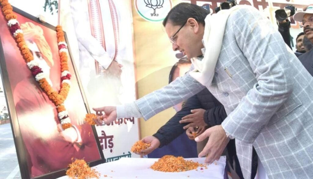 देहरादून: राष्ट्रीय युवा दिवस के अवसर पर मुख्यमंत्री पुष्कर सिंह धामी ने गांधी पार्क देहरादून में स्वदेशी संकल्प दौड़ का शुभारंभ किया। इस अवसर मुख्यमंत्री ने स्वामी विवेकानंद जी के चित्र पर श्रद्धा सुमन अर्पित कर उनको नमन किया। स्वदेशी उत्पादों को बढ़ावा देने वाली संस्थाओं को उन्होंने सम्मानित भी किया। मुख्यमंत्री ने कहा कि स्वामी विवेकानंद जी का उठो, जागो और लक्ष्य की प्राप्ति तक रुको मत का संदेश देश की मजबूत नींव के लिए युवाओं को हमेशा प्रेरित करता रहेगा।
