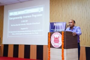 देहरादून: स्कूल ऑफ मैनेजमेंट एंड कॉमर्स स्टडीज़ ने राष्ट्रीय लघु उद्योग और उद्यमिता विकास संस्थान के सहयोग से उद्यमिता जागरूकता कार्यक्रम का सोमवार को सफलतापूर्वक आयोजन किया। इस कार्यक्रम का उद्देश्य छात्रों को उद्यमिता पारिस्थितिकी तंत्र और भारत में उभरते उद्यमियों के लिए उपलब्ध अवसरों के बारे में प्रेरित करना और शिक्षित करना था।