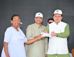 देहरादून: मुख्यमंत्री पुष्कर सिंह धामी ने बुधवार को देहरादून नगर निगम के अंतर्गत केदारपुरम में योगा पार्क एवं अन्य विकास कार्यों का लोकार्पण एवं शिलान्यास किया। इस अवसर पर उन्होंने एआई चैटबॉट ‘निगम सारथी’ लॉन्च किया और हरित नीति के डोक्यूमेंट का अनावरण भी किया। मुख्यमंत्री ने पर एक पेड़ माँ नाम के नाम के तहत रूद्राक्ष का पौधा रोपा, जो सरकार द्वारा चलाये गये बृहद पौधारोपण अभियान के तहत नगर निगम क्षेत्र देहरादून के अन्तर्गत इस वर्ष रोपा गया एक लाखवां पौधा था। कार्यक्रम में मुख्यमंत्री ने स्वच्छता सम्मान सेनानियों और कर निरीक्षकों को सम्मानित भी किया। इस अवसर पर मुख्यमंत्री ने नशा मुक्ति के लिए सामूहिक शपथ भी दिलाई।